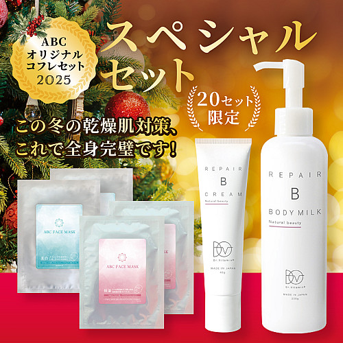 当ショップをはじめ、芦屋美容クリニックや&ABCクリニックなどでもリピーターが大変多い「リペアBシリーズ」と「ABC FACE MASK」のセットです。自分へのご褒美に、大切な方へのプレゼントに是非どうぞ。