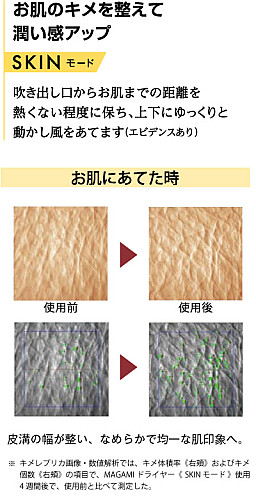 SKINモードでは心地よい温かさを感じながら肌のキメを整えてくれます。